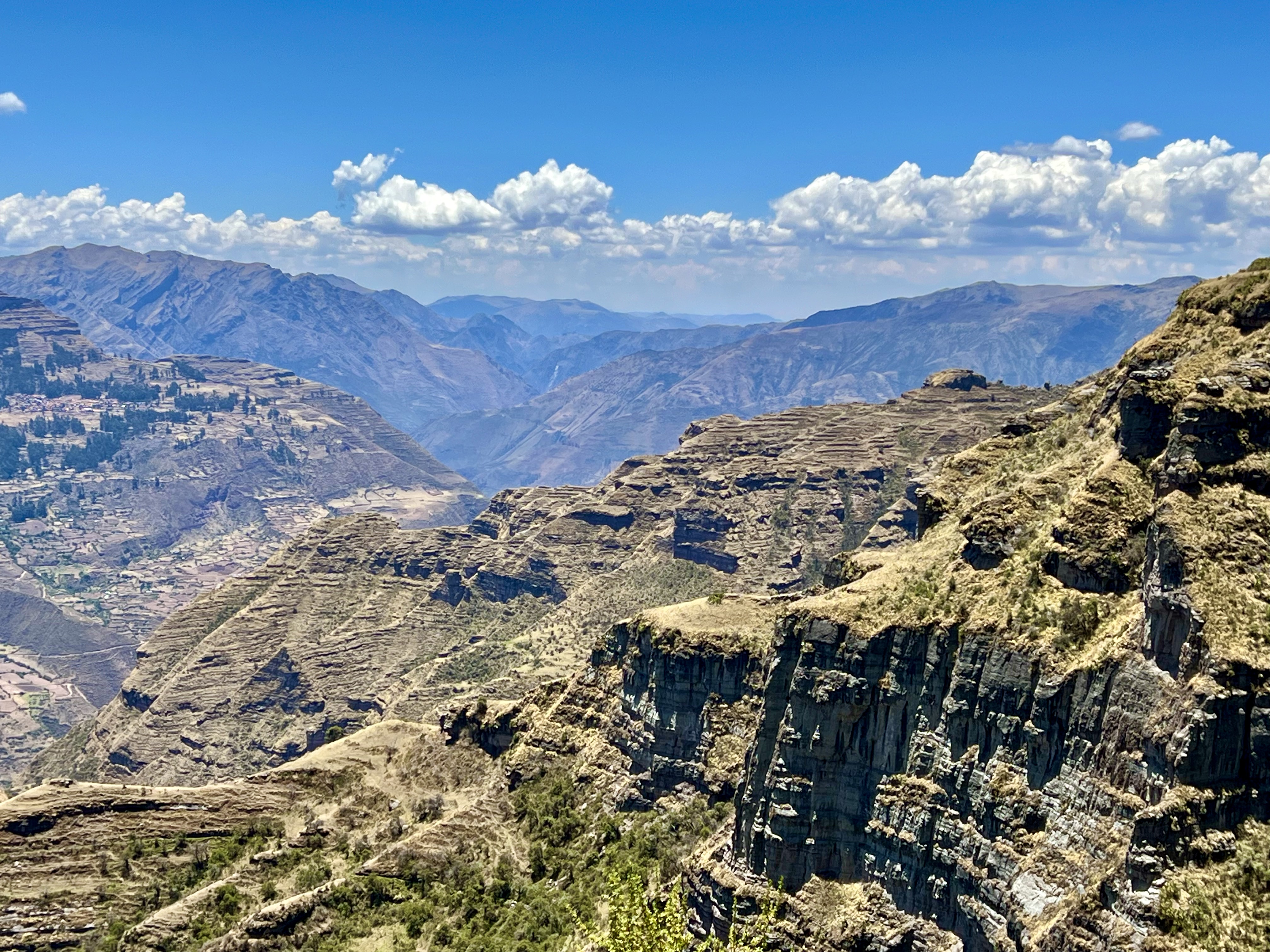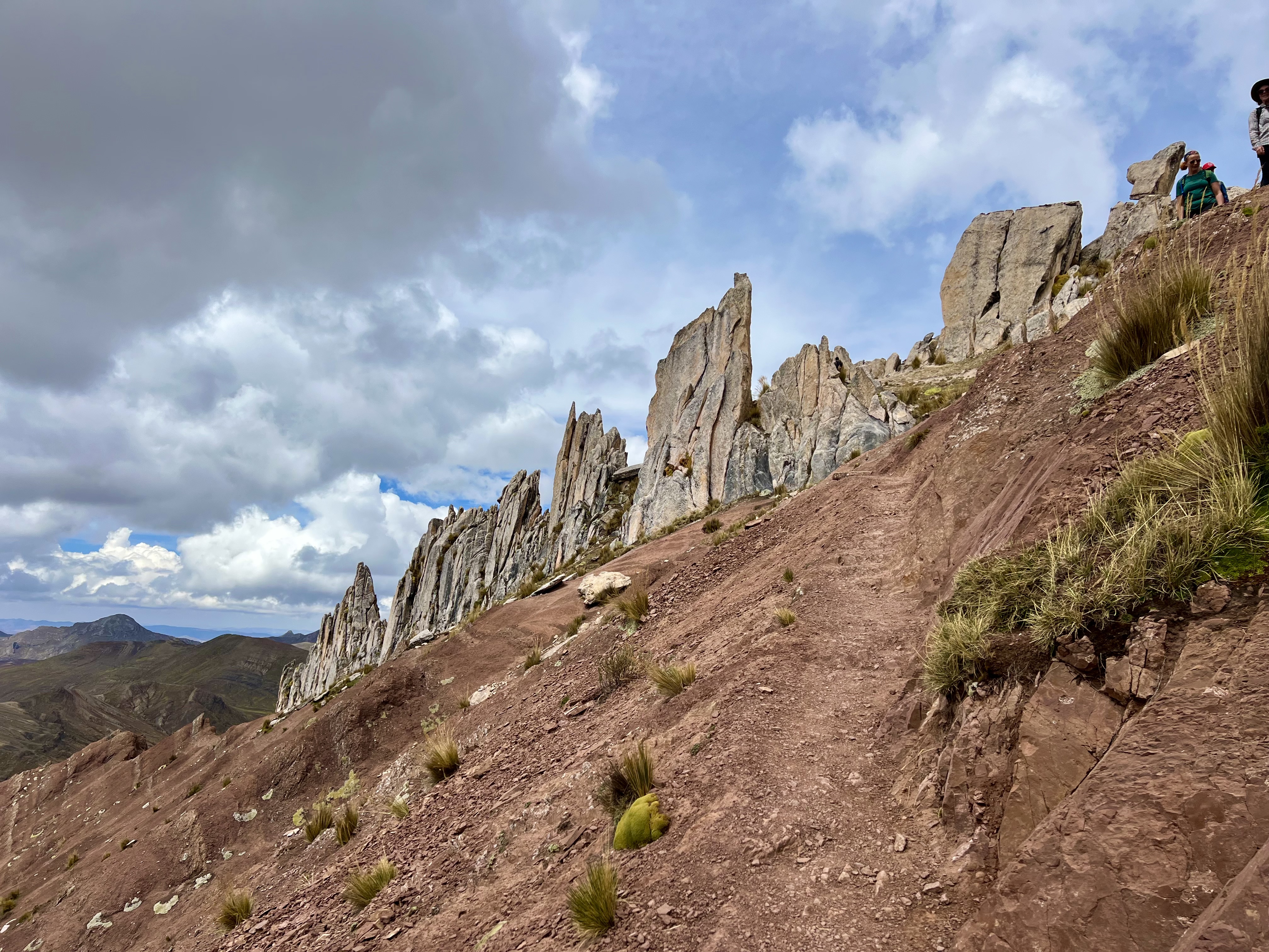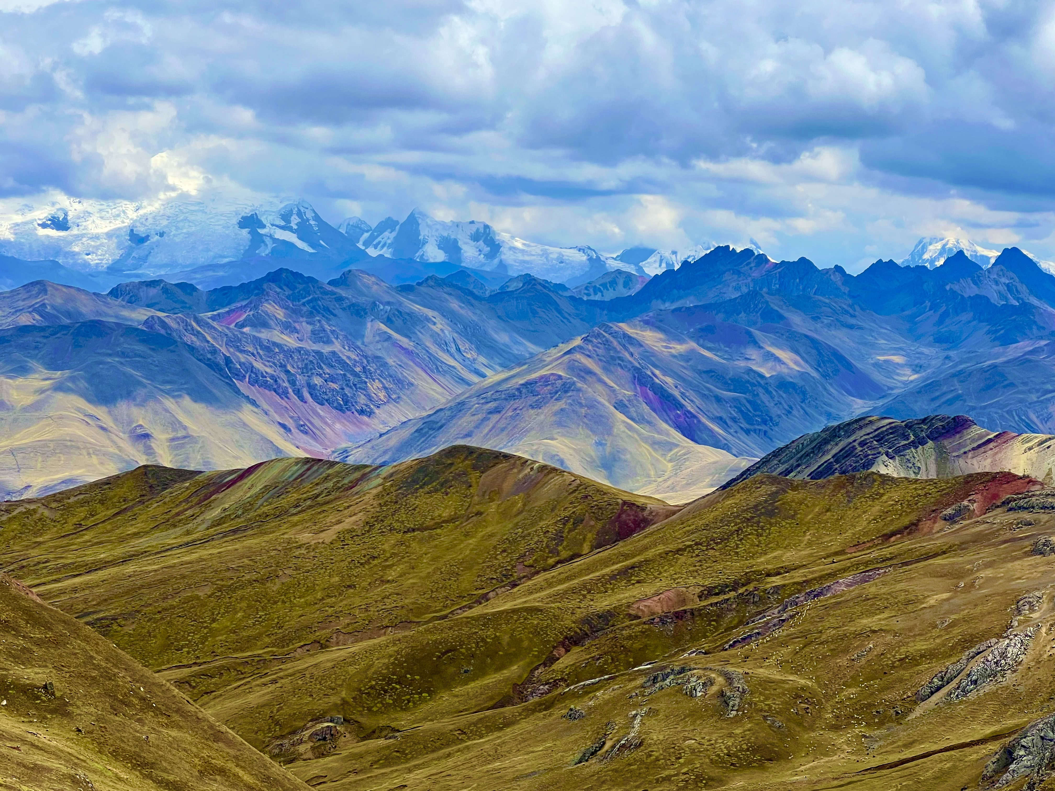 The tour that got me to Waqrapukara was my second attempt to get there. The first time, a week before the successful event, we were unable to go up the gravel section of the road as it was closed for a rally. The tour guide suggested we go to another place across the valley as no one in the group had been there. There are three ‘rainbow mountain’ tours in the Cusco area. The main one, has thousands of people and is almost as popular as Machu Picchu. One of the other ones, Palccoyo, has much less traffic, and this is the one we went to. It was a beautiful walk/short hike (1 ½-2 hrs) with amazing views of the different colors from the earth’s minerals shining through. In the distance from the top, Ausungate, the sacred glaciated mountain, peaked through the clouds. The Andes around Cusco are truly beautiful.