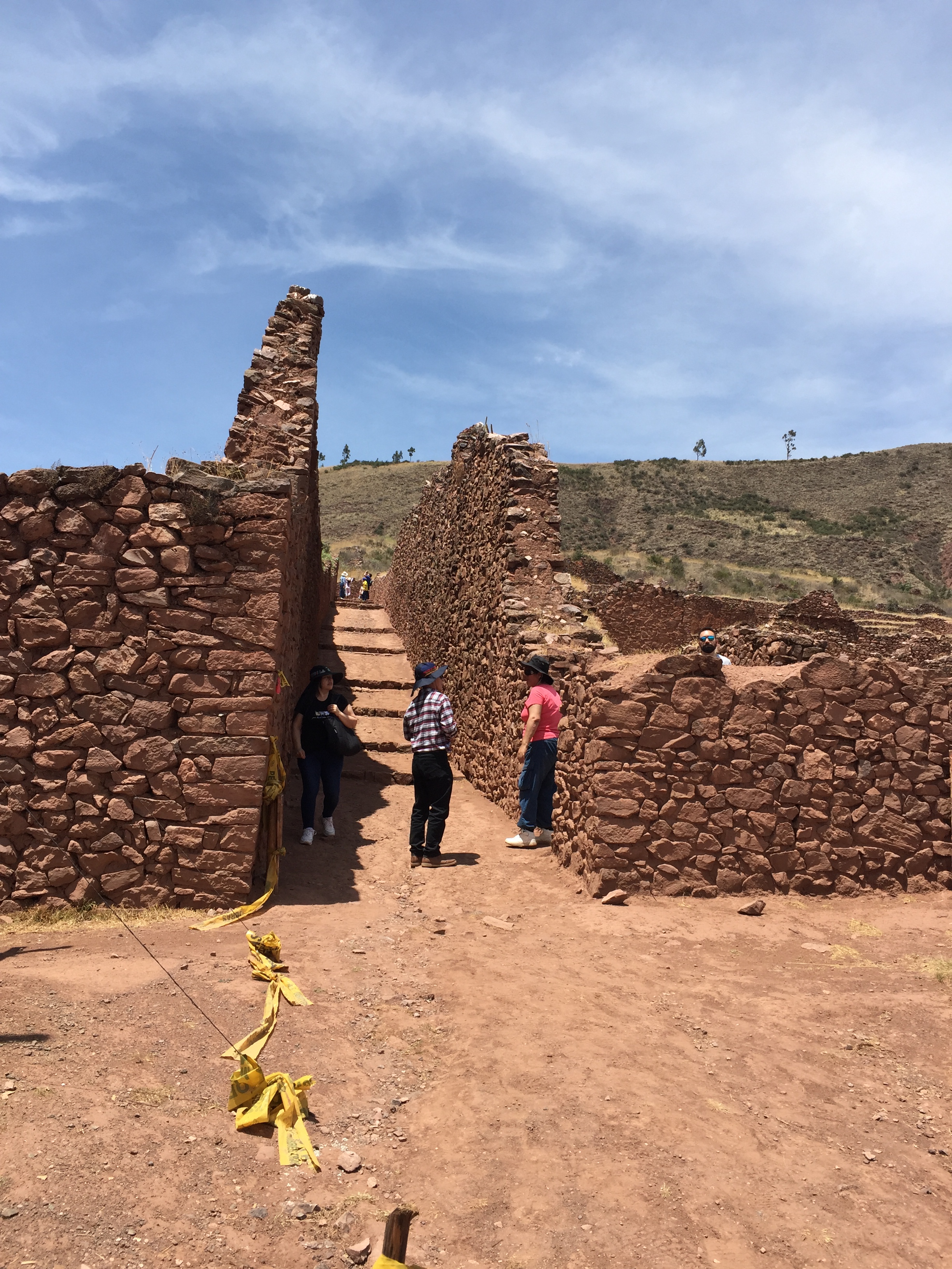 One of the pre-Incan sites I was able to visit was Pikillaqta, an ancient Wari settlement. The Waris were active between 900 CE until conquered by the Incans ca. 1400CE. The Incas often built their structures with reference animals that related to their belief system; the Waris were more strait-laced in their architecture, although their pottery has quite intricate designs. Pikillaqta was fortified town in the form of a square, with the religious sites in the center. The walls were up to 12m high with narrow paths connecting the various areas. To build their walls they used a form of cement, unlike the Incas who used no adhesive whatsoever, allowing the stones to naturally fit with one another, thereby allowing for movement in case of an earthquake. The Andes have always been seismically active.