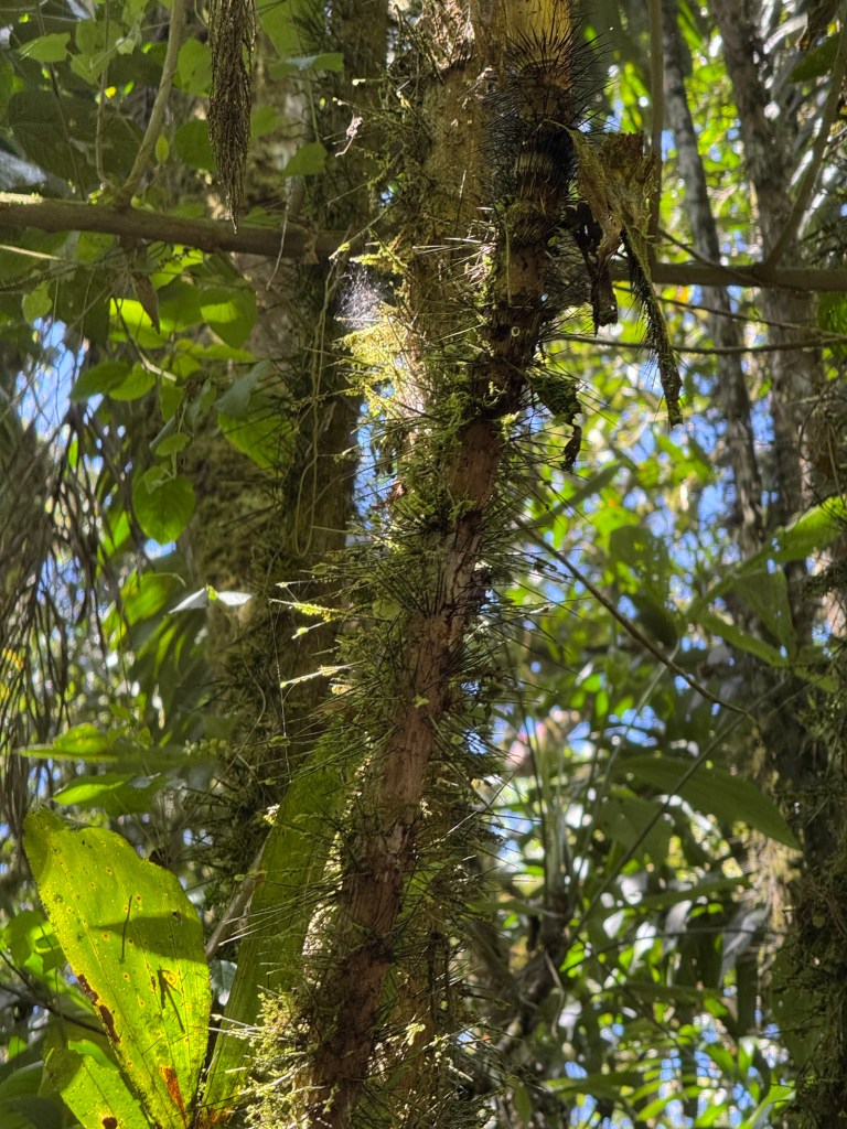 The meeting point for the tour was just a few minutes’ walk from where I was staying in El Poblado, a tourist section of Medellín. The group of five people, including me, met about 9am. The others were from NYC and Quebec, so the tour was conducted in English. We drove for a little over a half hour up into the mountains surrounding the city, and I was once again glad I was not responsible for driving on the steep narrow windy mountain roads. Along the way, we picked up the second guide, Eduardo, who apparently lives in a nearby mountain village. As with the waterfall hike in El Salvador, there is a guide in the front and one in the back. We finally stopped at a finca, where I was able to rent a pair of rubber boots. Sebastian, the first guide, warned us that we would be crossing streams with water up to our knees, and as I didn’t want to get my hiking shoes soaked, I was glad that the goulashes were available, as was a walking stick. We headed out from the finca on a flat path for a few hundred meters, before coming to a series of stairs. Along the way, Sebastian stopped at a plaque explaining that the trail we were on has been used for over 2,500 years and to explain some of the vegetation we were encountering, including the trees whose leaves or seeds have psychedelic properties. After descending a few hundred stairs, we came to the real beginning of the rainforest trail. From here to the waterfall took about an hour and we did crisscross the stream innumerable times. The sides were covered with various sized boulders, some of which were very slippery, and I was glad I had the walking stick for added balance. At times, I also needed Eduardo’s helping hand to get up and not slip. At one place a rope was tied to a tree, and we had to scramble up some steep boulders; it wasn’t nearly as bad as the climb in El Salvador, but still a bit of a challenge. When we got to the waterfall another group was just leaving. It is customary to sit under the falling water for at least seven seconds, and if one is really a masochist, seven minutes. The water is freezing! I cheated and just did a Pachamama ritual as we were in her midst. We stayed at the waterfall for about a half hour before returning the same way to the finca. The tour ended back where we started about 1:30pm. It wasn’t a long tour, but it was absolutely delightful. The rainforest around Medellín is magnificent, as are the views of the city from the mountains!