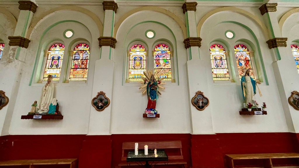 Contrary to most other people, who liked Jardin the most, I found the small village of Hispania to be my favorite. Both the square with its impressive trees and gardens and the church with the magnificent stained-glass windows above the line of Marian statues lent a sacred feeling to the place different from the commercialism of the other two towns.