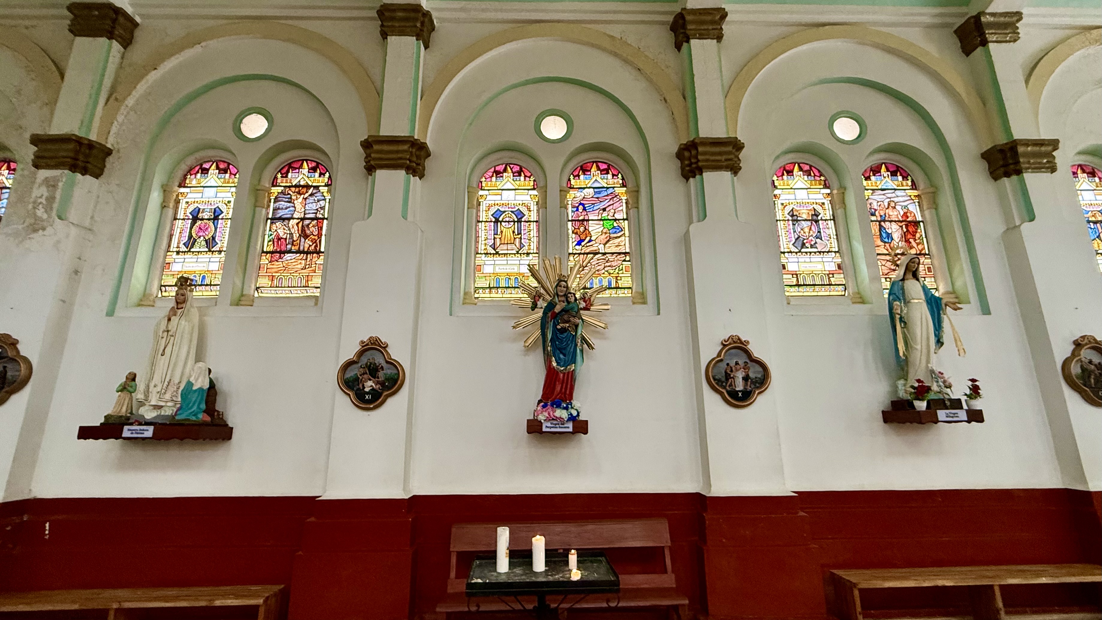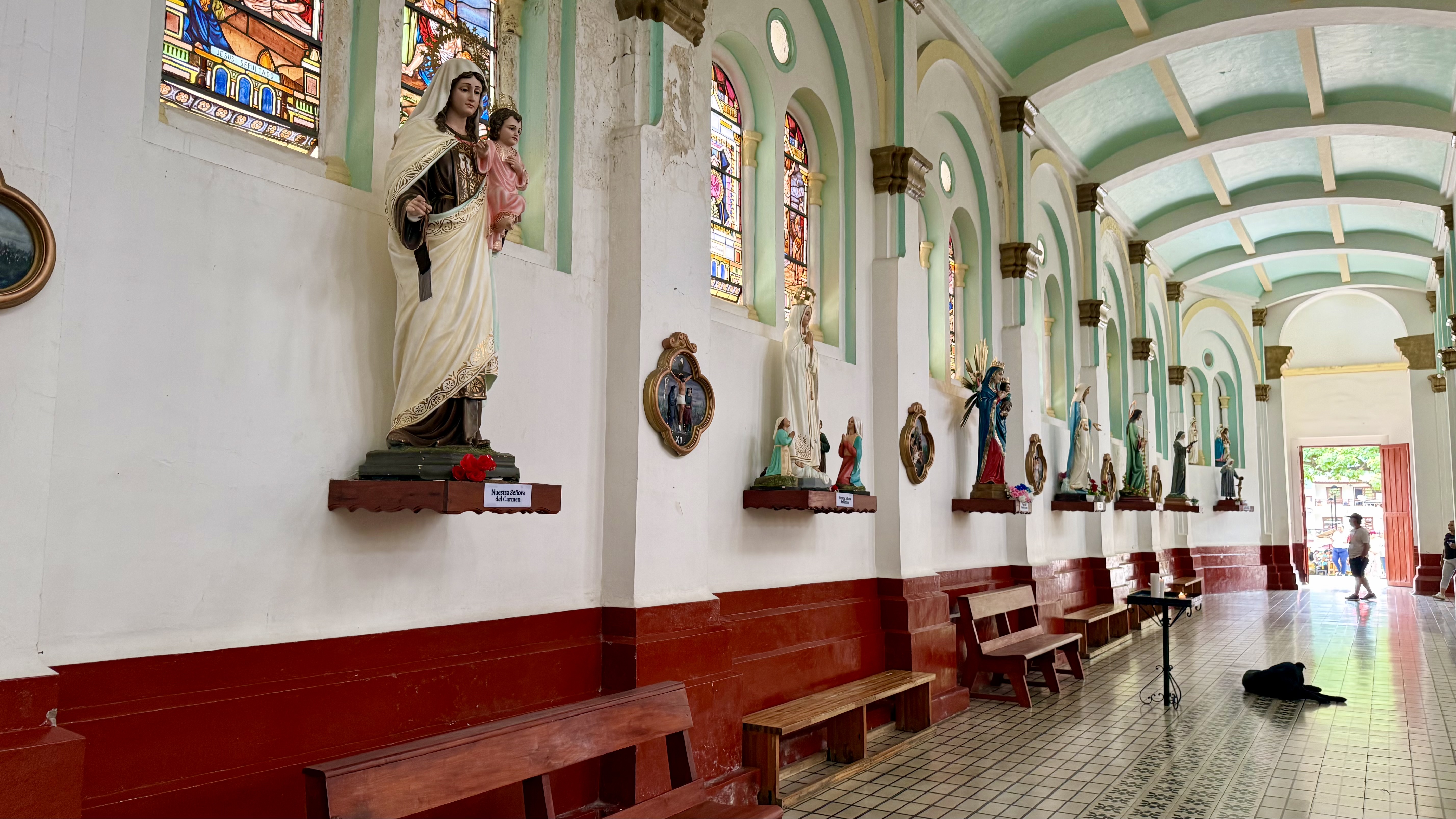 Contrary to most other people, who liked Jardin the most, I found the small village of Hispania to be my favorite. Both the square with its impressive trees and gardens and the church with the magnificent stained-glass windows above the line of Marian statues lent a sacred feeling to the place different from the commercialism of the other two towns.