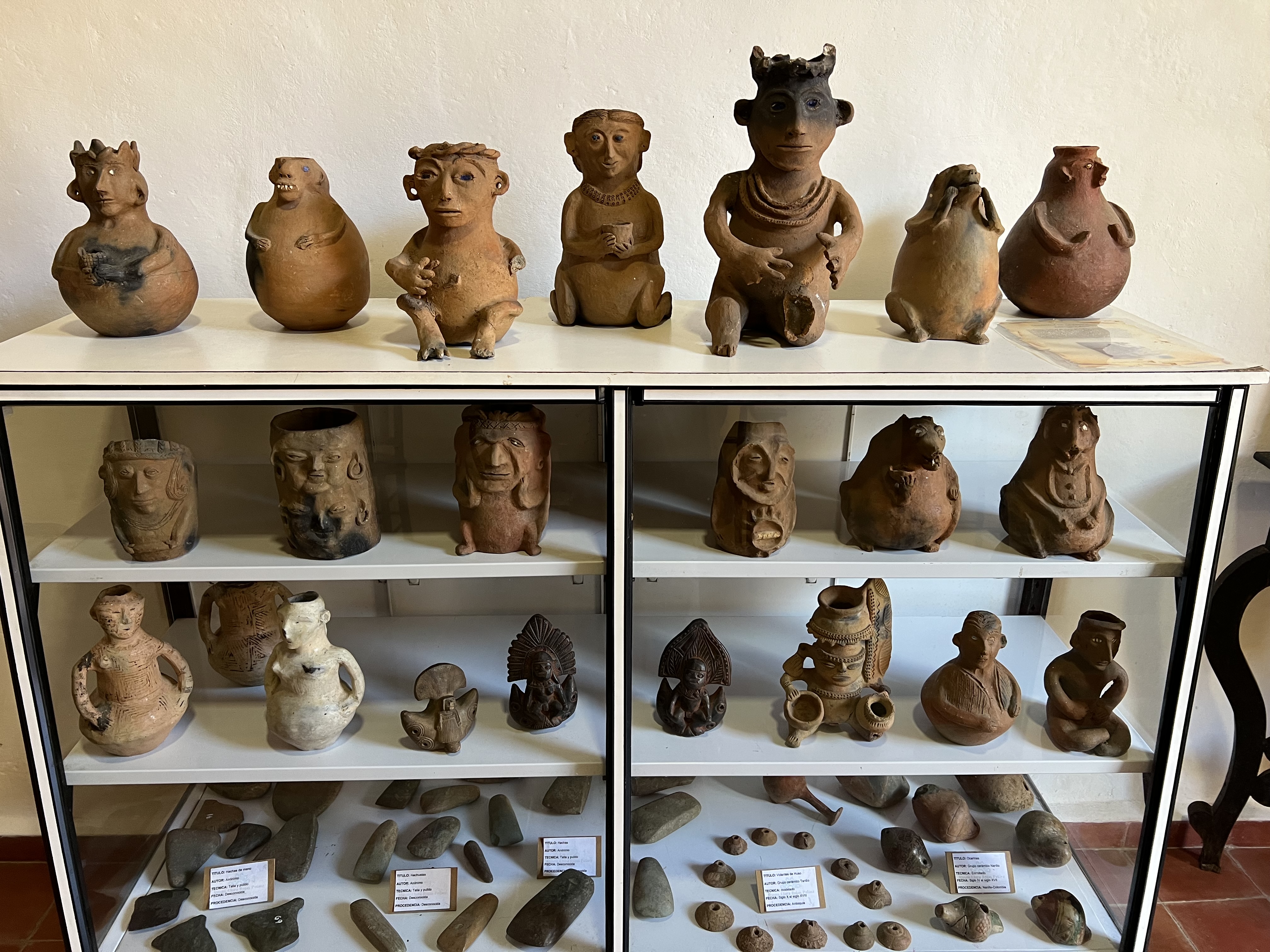 The last village stop of the day was in Jardin, which is considered to be one of the most beautiful villages in the country. It too is on the National Heritage registry because many of the houses have retained their original character. They are brightly painted with flowers hanging in baskets from the balconies and on the sides of the houses. The wooden windows are lined with horizontal wooden strips that let both light and views in exposing the interior. Jardin is the largest of the towns we visited with around 15,000 inhabitants. It is the center of the coffee production for the region. As with many places in this part of the world, the Plaza Mayor is dedicated to El Liberador, Simon Bolivar, and his statue is on prominent display not too far from the large fountain in the middle, which used to be the water source for the town, when it was still a village. The site of the town and surrounding area has been inhabited by indigenous peoples well prior to the Spanish conquest and their artwork is still valued, and sold, in the square and shops. On the side of the Plaza kitty corner from the Basilica, is the museum in the Casa de Cultura, which has both indigenous and more contemporary art on display. The church, which was built in a quasi-neo-Gothic style between 1918-1942 was raised to minor basilica standing in 1980. The Basílica de la Unmaculada Concepción is quite large. What is most striking about the structure, however, is that it is made from cut stones from local mountains as penance for the parishioners’ sins. The church was designed by Giovanni Buscaglione and is a very impressive – if austere – structure. One has to wonder what sins in this small town could be committed to warrant such a large building. There is a novel waiting to be written about this place.