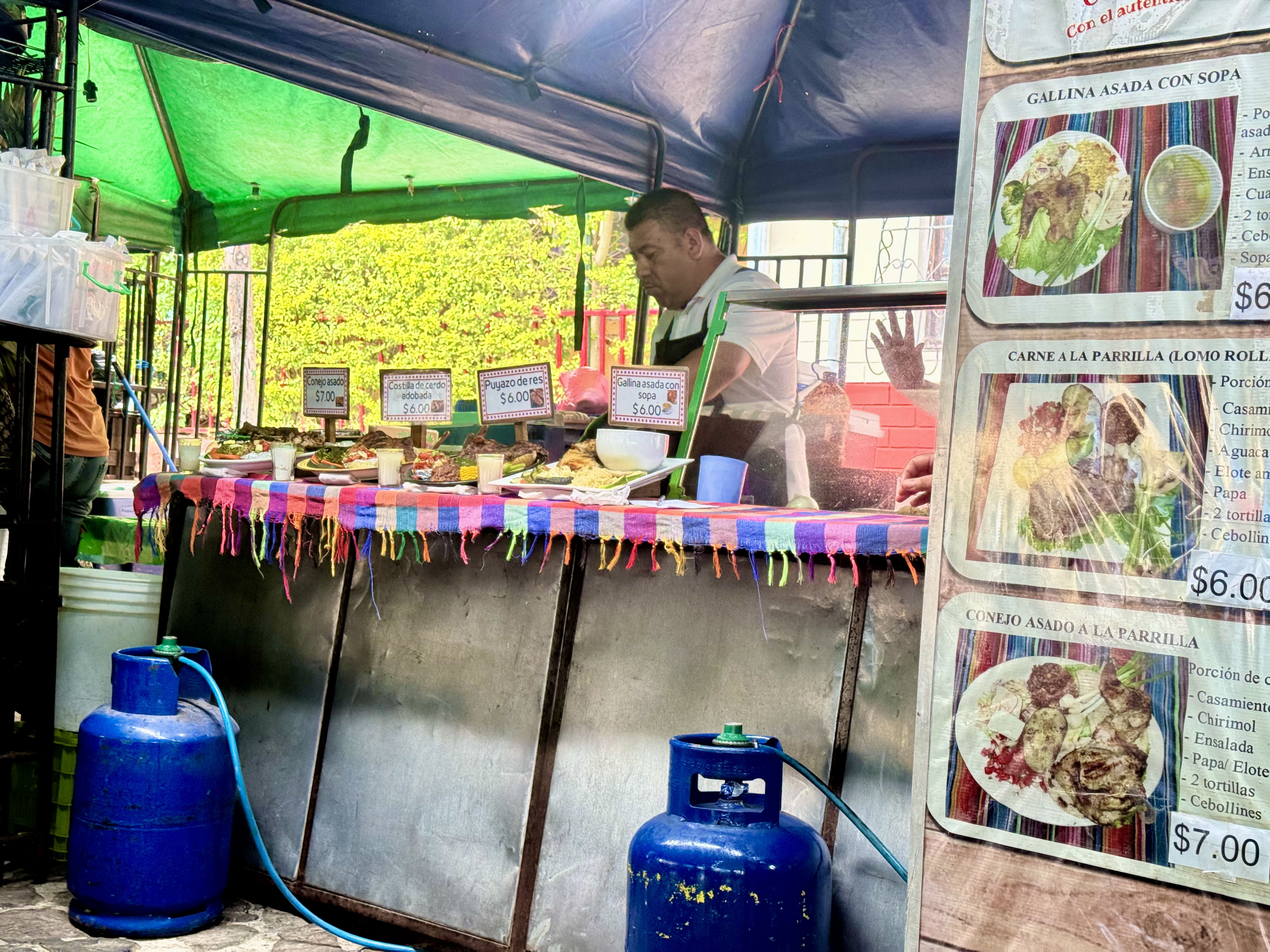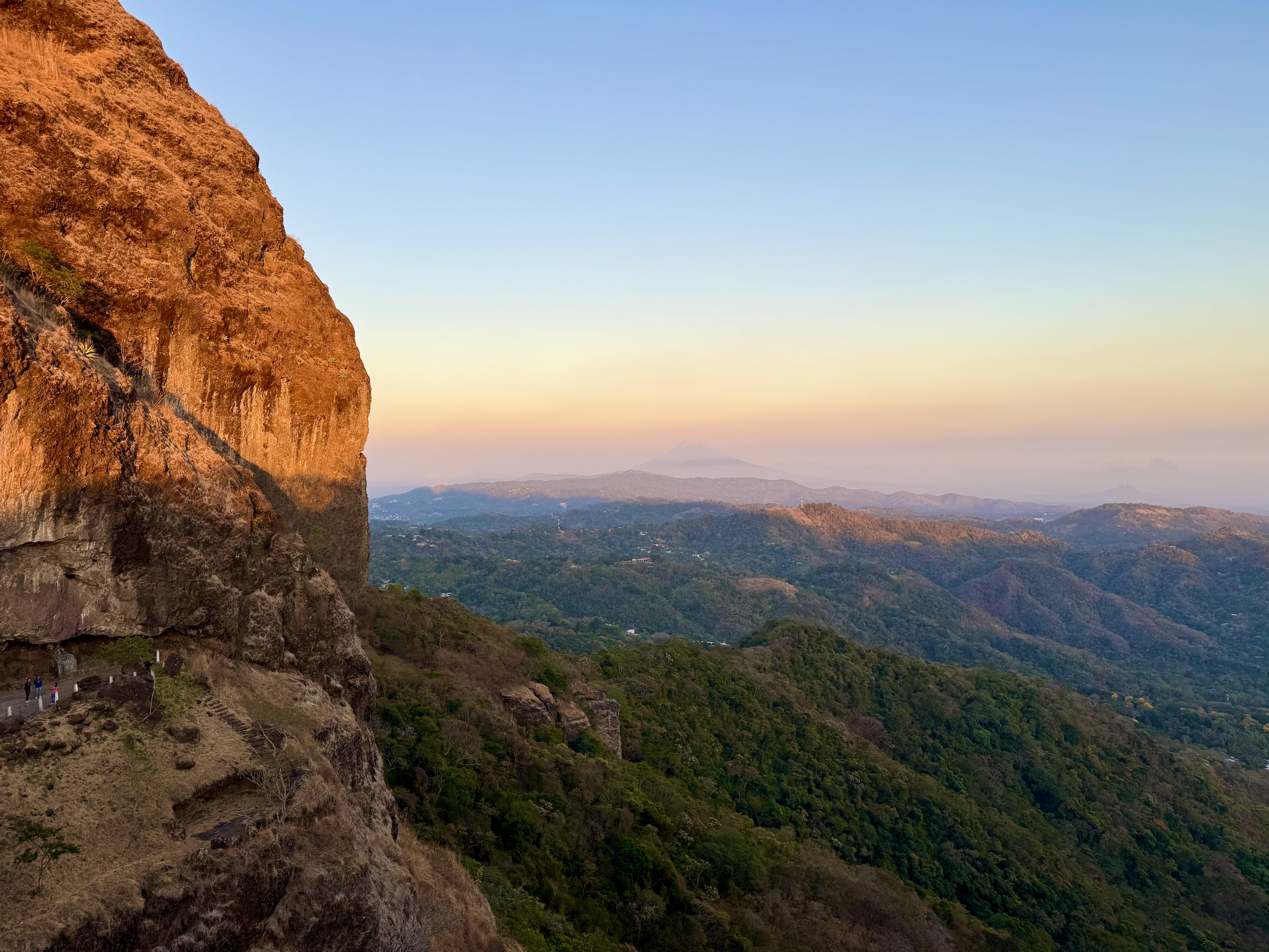 After walking around the center for a while, I met an old friend in the library, and we took an Uber up to Puerta del Diablo, which is a viewpoint on a hillside outside of the city. We arrived too late to do the climb to the top; the gate closes at 5:30pm, but we were able to do the other smaller hill on the opposite side of the plaza and to the cave. The view is fabulous and the food in the food court was excellent. A plaque near the entrance to the gate explains the story of the site: “There are various legends surrounding the history of the Puerta del Diablo site. One recounts that the property was privately owned by the Renderos family, which gave rise to the name of the area Planes de Renderos. The daughter of the Renderos family, Maria de la Paz, was courted by the devil himself, and the family decided to hunt him down. One night after calling upon young Maria de la Paz, the devil found himself cornered by his would-be captors. He broke through the rocky outcrop to escape through the middle of the peak. Since then, the site has been known as Puerta del Diablo due to the curious shape of the two elevated peaks on either side of the crevice.”