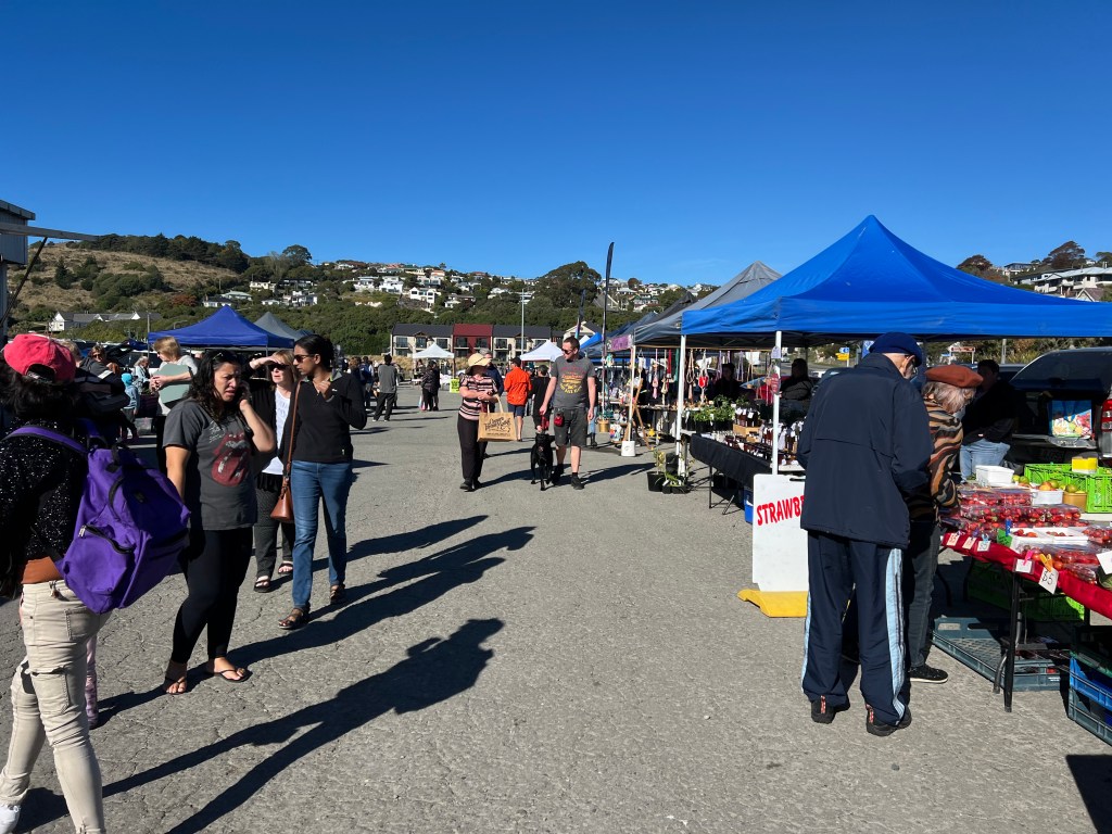 The day was topped off with a dinner visit at the local Brewery complete with live music. As it was Saturday night, it seemed that all of Oamaru had gathered there. We were impressed with the town, the views, the wildlife, and the Sunday Farmers’ Market, where local artisans were selling their wares along with the fruit, vegetable, and bakers’ vendors. Here too, musicians helped create a lively atmosphere for those meandering through.