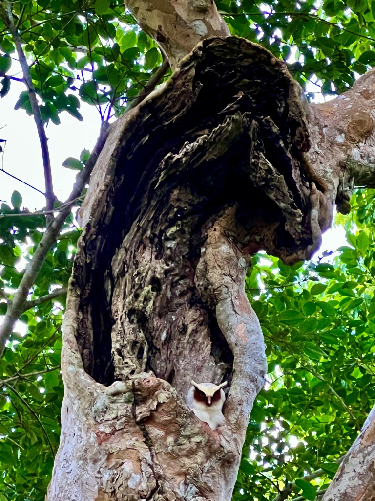 We made it to the lodge just as the heavens opened up and the downpour began. I wasn’t sure whether we would be able to go on the caiman viewing due to the rain, but as the boat had a roof, we went. We were able to see a couple of white and black caiman heads and a wonderful owl, but unfortunately the pictures didn’t come out due to the light discrepancy between the spotlights and the dark surroundings. Nonetheless, the covered boat ride in the rain, was delightful.