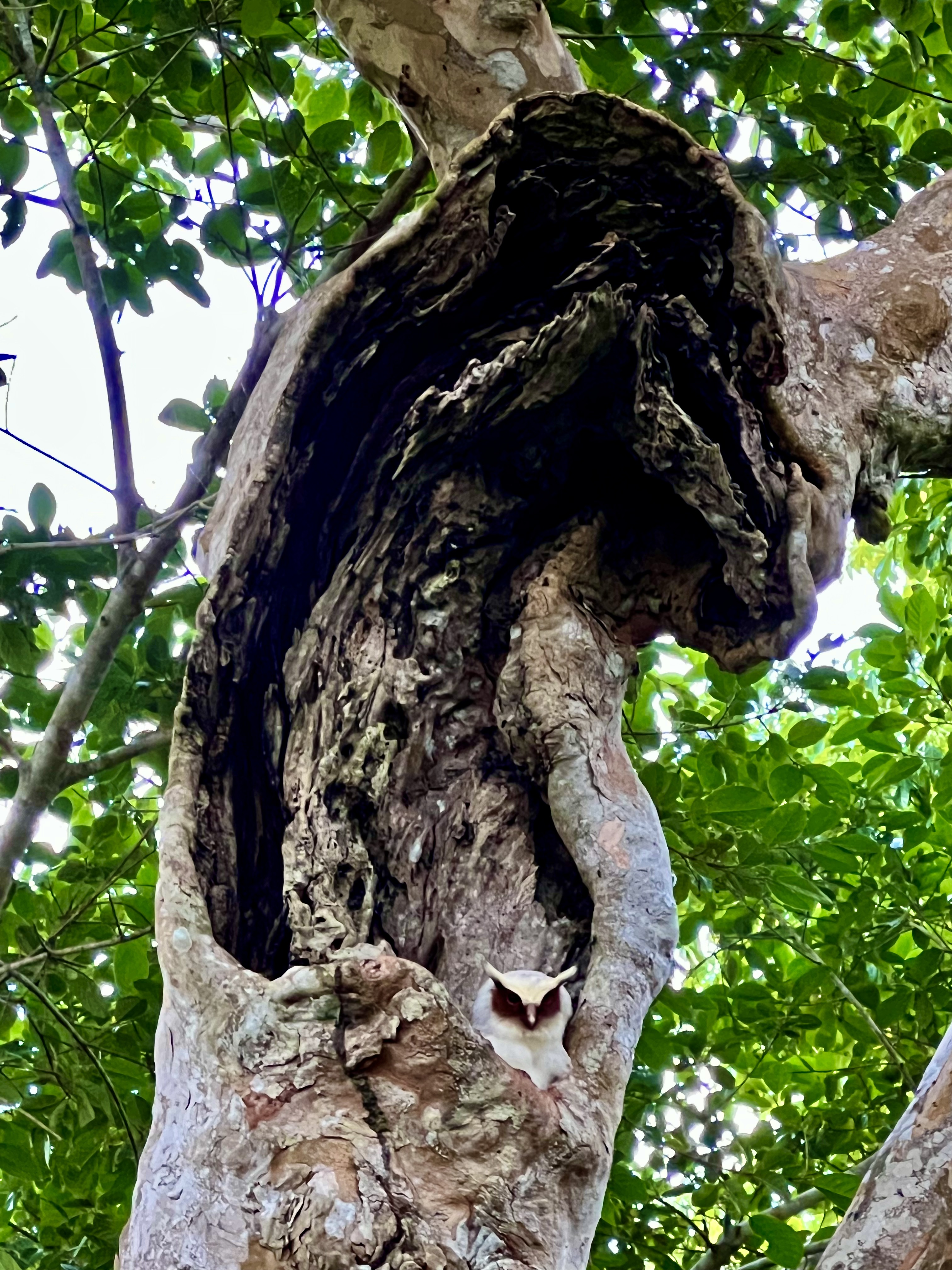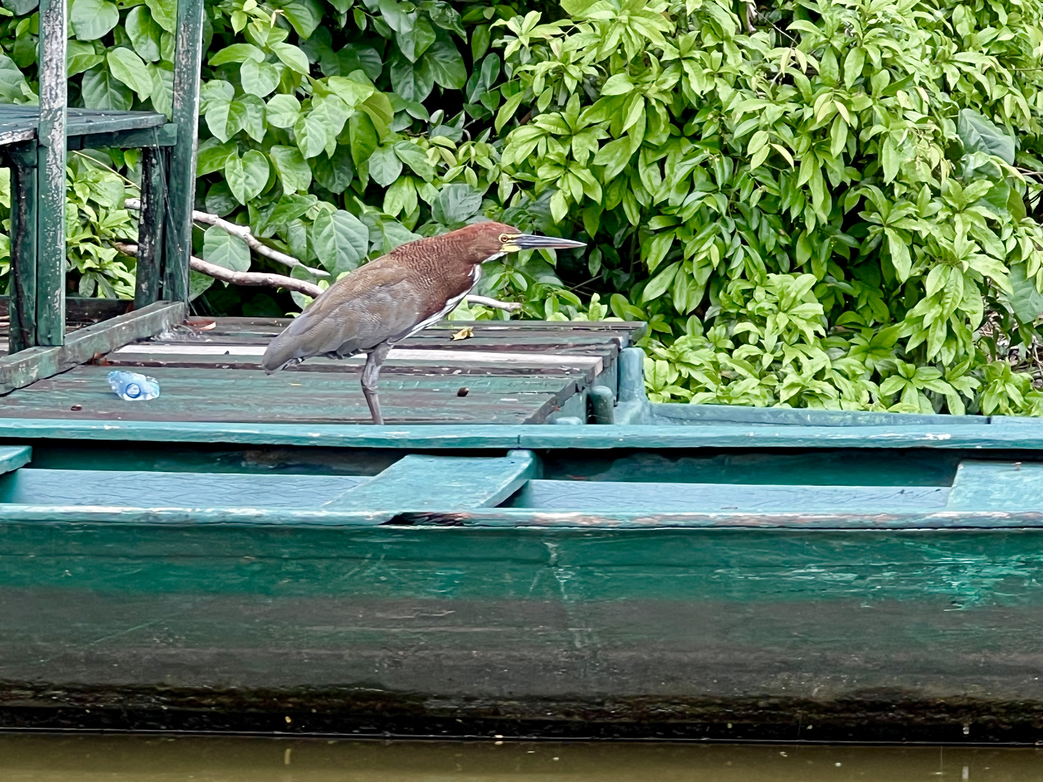 We made it to the lodge just as the heavens opened up and the downpour began. I wasn’t sure whether we would be able to go on the caiman viewing due to the rain, but as the boat had a roof, we went. We were able to see a couple of white and black caiman heads and a wonderful owl, but unfortunately the pictures didn’t come out due to the light discrepancy between the spotlights and the dark surroundings. Nonetheless, the covered boat ride in the rain, was delightful.