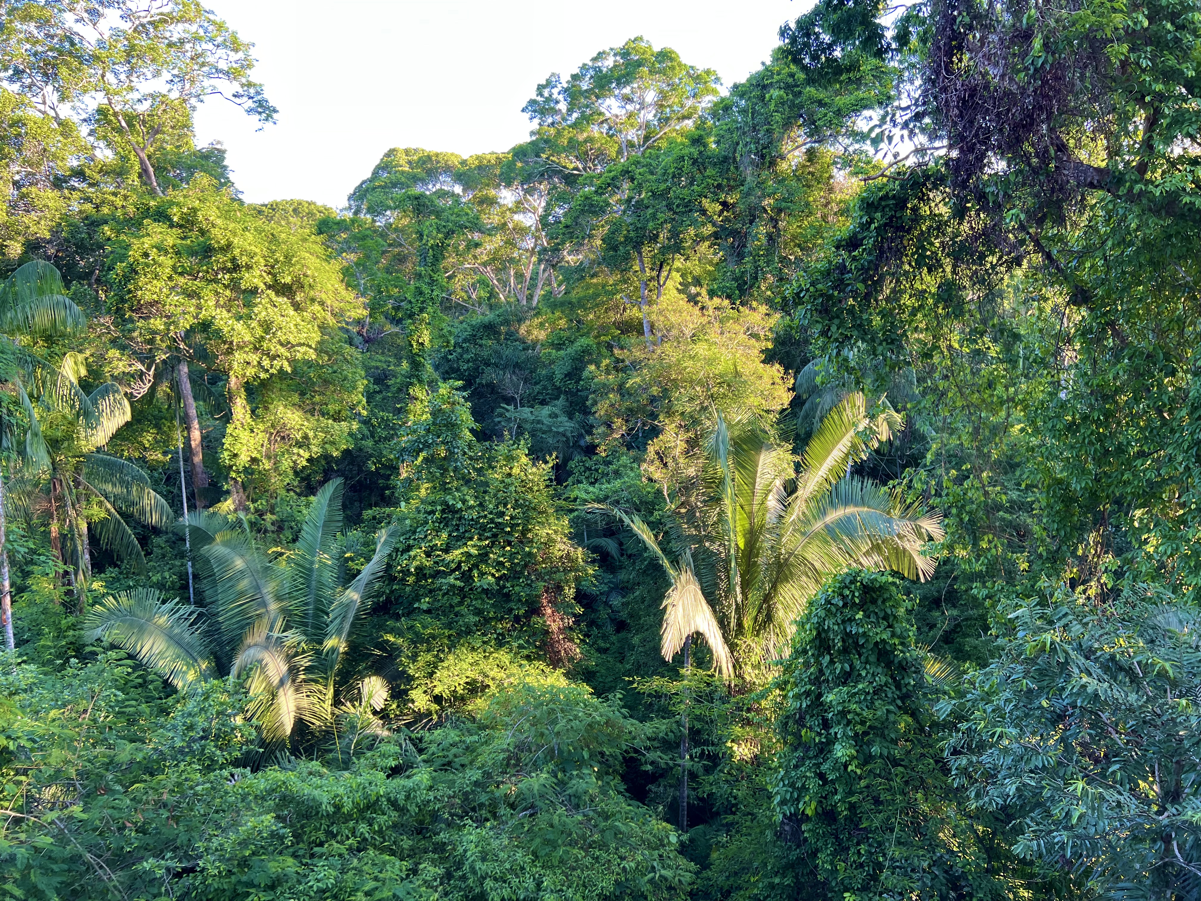 For those who are curious about the lodge, the accommodations include private bathrooms, but no hot water as the energy comes from the sun and this is the rainforest. In my room, I was spared the cockroaches and mini-frogs that shared my room in Brazil. The room was clean and well-kept, if basic. The wifi signal doesn’t work, or at least it didn’t for me, so it is a good place to escape cell phones and computers. There is a charging station in the dining room, though. The food was copious – as elsewhere in Peru, rice and potatoes with meat or fish, but at least here there was a small salad accompanying the meal and/or a soup. Desserts were delicious, chocolate or pineapple pudding or caramelized papayas. The staff was helpful, courteous and knowledgeable about the area. They make an effort to keep everyone safe and happy.
